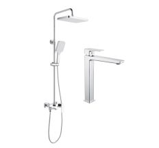 Sistema P Система душова (змішувач для ванни, душ 246*170 мм, ручний душ 1 режим, білі лійки, шланг полімер 1,6 м), cromo